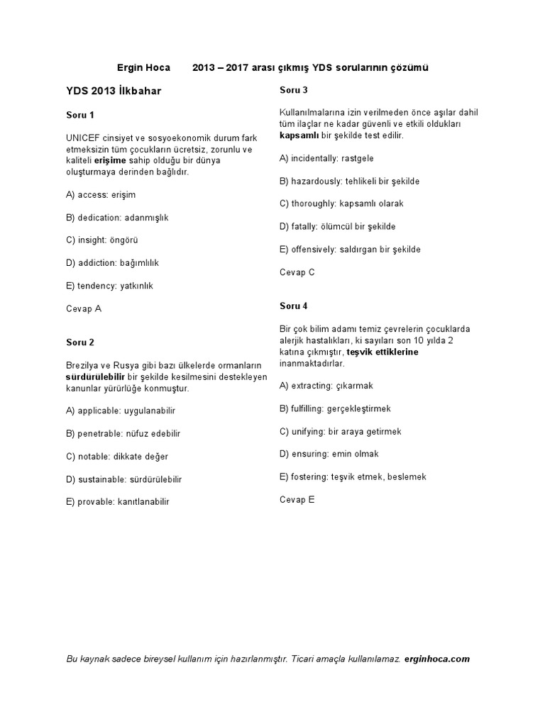 fiilde cati ygs de cikmis sorular pdf