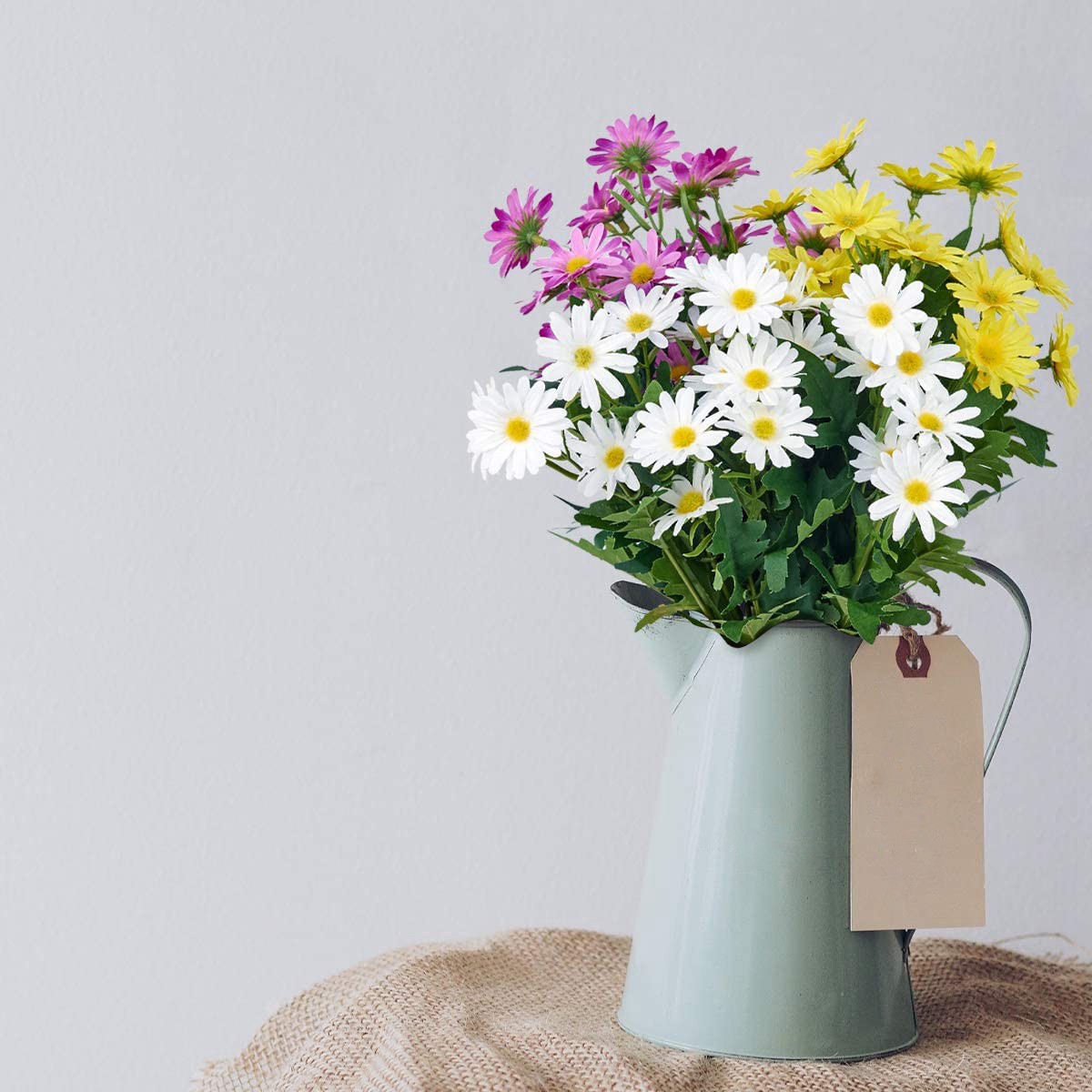 rinlong artificial daisies uv resistant flowers outdoor chrysanthemum mums fake plants white gerber daisy greenery plastic faux cemetery flowers for
