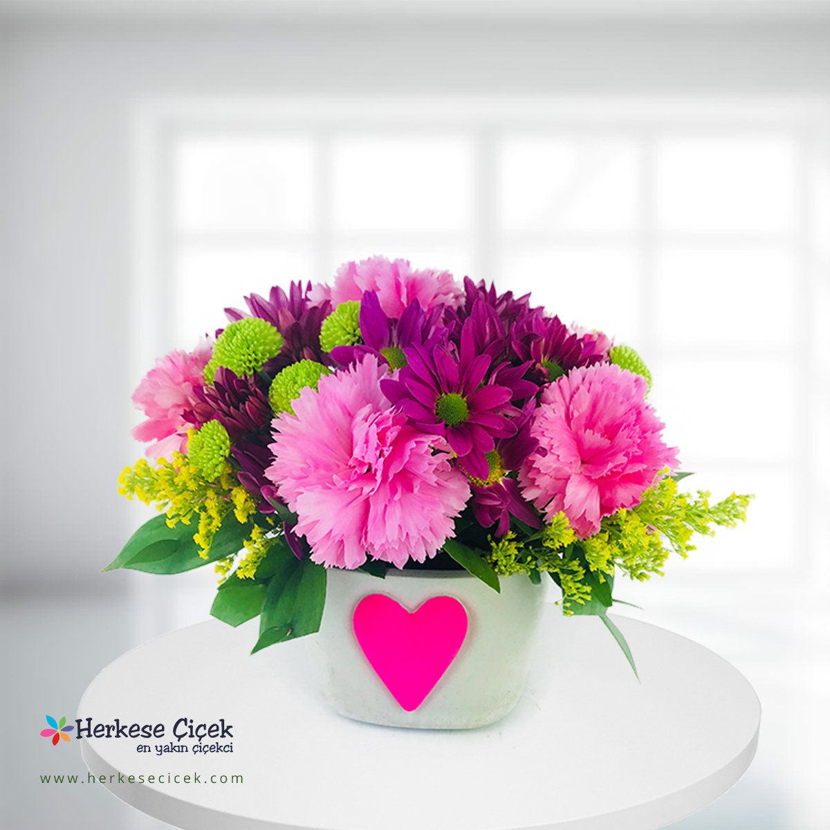 kutukte rengarenk papatya aranjmani