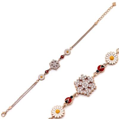 papatya ve ugur bocegi roslu gumus bileklik