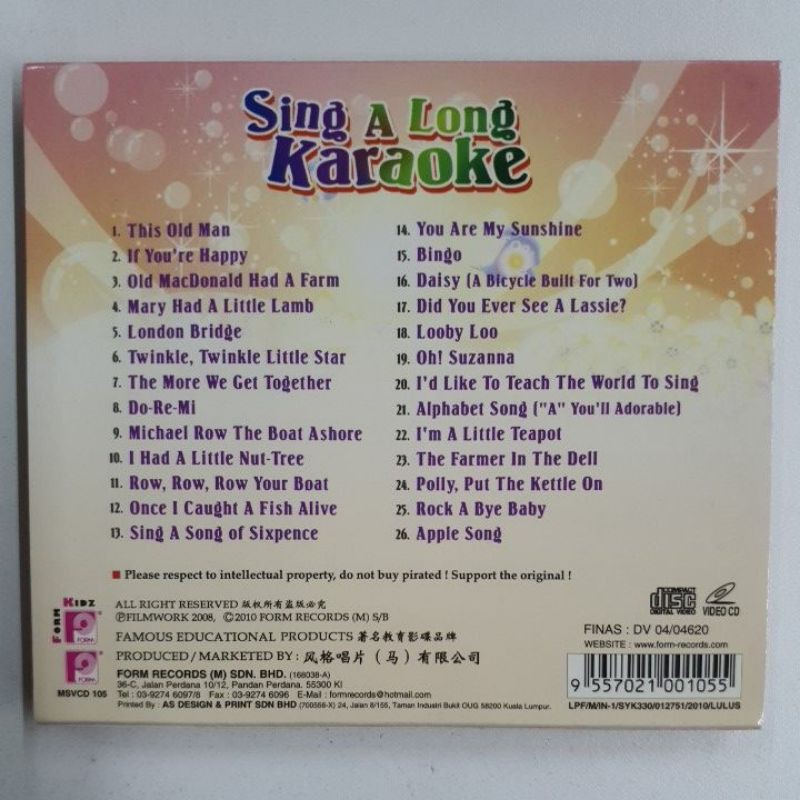 vcd children songs sing a long karaoke