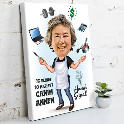 marifetli annem karikaturlu kanvas tablo