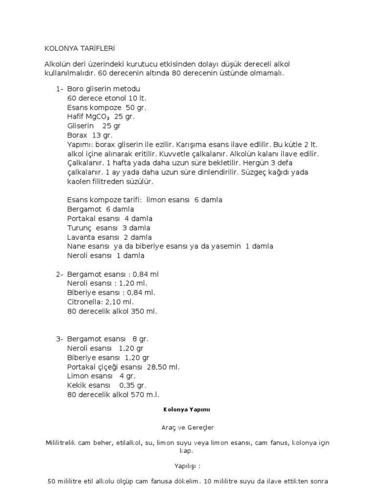 kolonya tarifleri alkolun deri