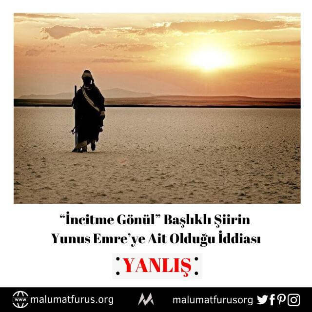 incitme gonul siirinin yunus emre ye ait oldugu iddiasi