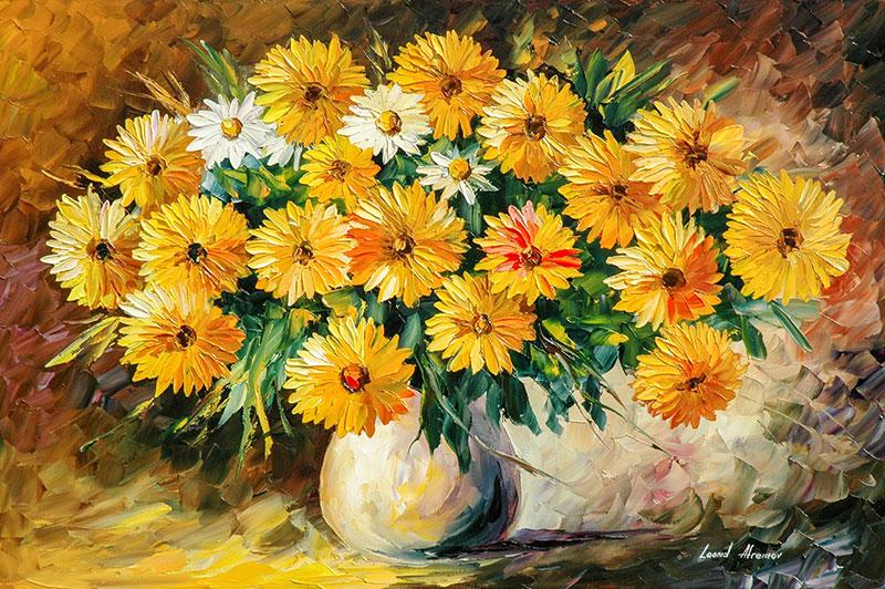 mor beyaz ve sari papatya ile renkli tablo seti