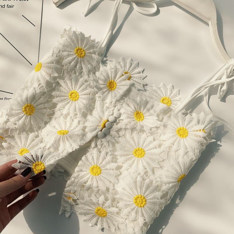 juta blackpink jennie daisy flower lace sexy vacation tank top
